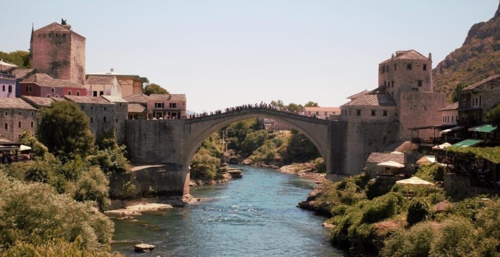 Mostar Köprüsü, Hırvat topçu birliklerinin 8 Kasım 1993’te başlattığı yoğun top atışları sonucu 9 Kasım’da Neretva Nehri’nin sularına gömülen tarihi bir köprüdür. [15]